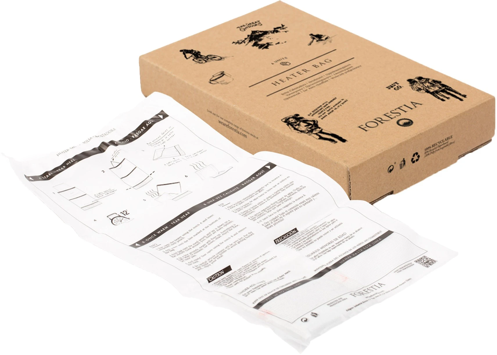 Forestia Heater Bags fungerer ved, at der blot skal tilsættes 50 ml. koldt vand for at aktivere den særlige saltblanding, som udvikler den tilstrækkelige varme, når vandet tilføres. Altså helt uden brug af kogeapparater eller bål. En smule koldt vand er altså alt, der skal til!