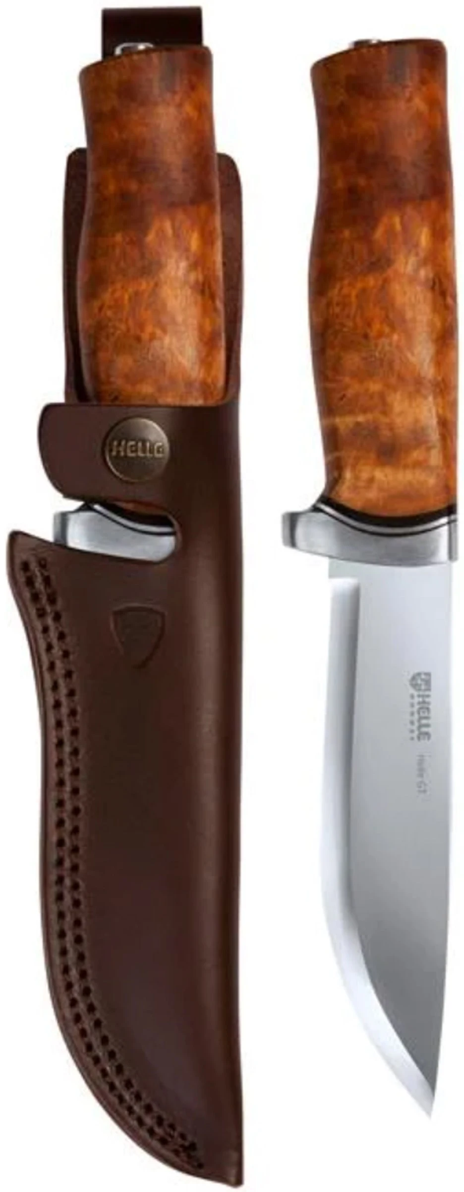 GT H3LS Classic Knife er således et fremragende valg til hende eller ham, som søger en stor og pålidelig kniv med effektiv fingerbeskyttelse. Kniven er udstyret med et smukt og velformet skæfte af smukt masurbirk, som i øvrigt opbevares i et oliebad i to dage, hvor olien trænger helt ind i kernen og beskytter træet mod udtørring.