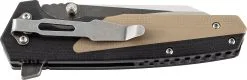 Bladmaterialet er af stærkt 440A rustfrit stål, som holder til lidt af hvert, og det skarpe blad låser automatisk, når det foldes ud. Herefter er knivens totallængde 23,8 cm.