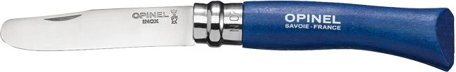 Opinel No 7 My First Opinel er med skæfte af det velkendte bøgetræ, der er nænsomt lakeret for at kunne modstå fugt og de daglige knubs.