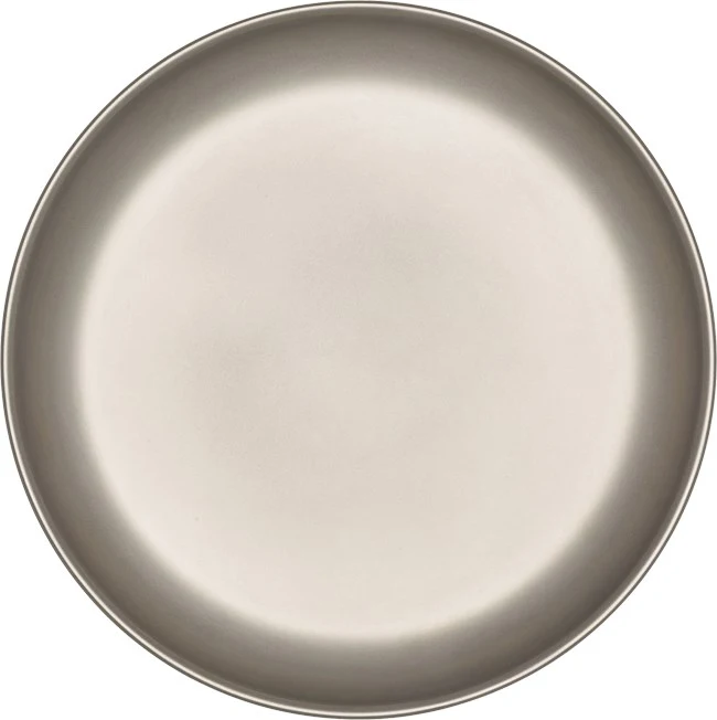 Titanium Plate er fremstillet af, ja, titanium, har en diameter på 18 cm. og vejer en bagatel af 60 gram. Og så er den selvfølgelig formet, så flere tallerkner kan stables, så de fylder mindst muligt under transport.
