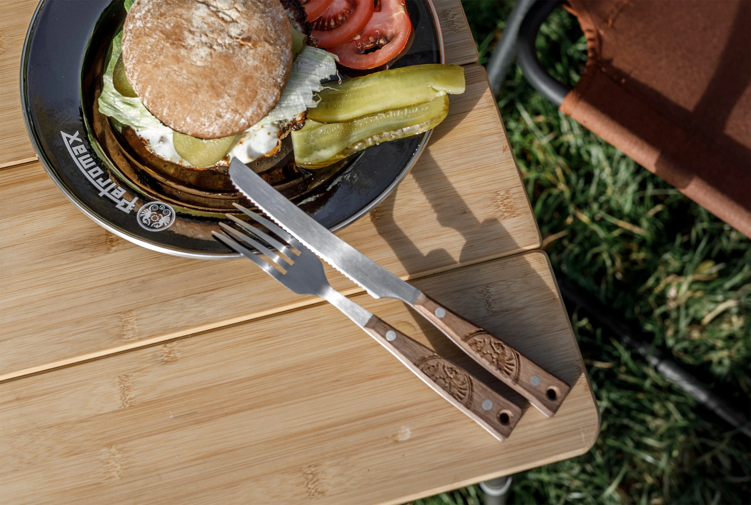 Uanset om du er i autocamperen, i skoven på picnic eller dækker op hjemme i haven, når den veltilberedte bålmad skal serveres, er det 5-delte bestiksæt det rigtige valg for den kræsne entusiast, der sætter en ære i sit udekøkken.
