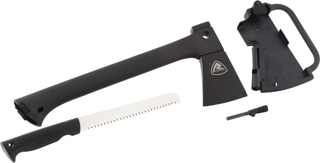 Under transport gemmes øksehovedet væk og fikseres i et robust plastcover, som både er udstyret med praktisk bærehåndtag og justerbar bælte løkker. Og i dette cover ligger så det praktiske ildstål gemt, som med et par stryg fra øksen eller saven sparker nogle heftige gnister af sig, som hurtigt skal få gang i det tørre kvas.