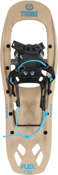 Modsat den mere ekstreme Mountaineer-udgaves ramme i letmetal, er Flex TRK 24 lavet med ramme og trædeflade i et ekstremt stærkt og fleksibelt kunststof, der netop giver denne model dens superfleksible egenskaber. Den ergonomisk korrekte og biomekanisk designede FLEX Tail™ absorberer stødende bag foden, når man træder, hvilket nedsætter belastningen omkring ankel og knæ og gør dig stand til at vandre længere uden at blive træt. Tubbs´ avancerede Torsion Deck™ sikrer dels, at sneskoen tilretter sig de varierende sneunderlag og dels giver det sneskoen en meget fin fleksibilitet i længderetningen, hvilket resulterer i en meget fin og smidig gåkomfort i ujævnt terræn.